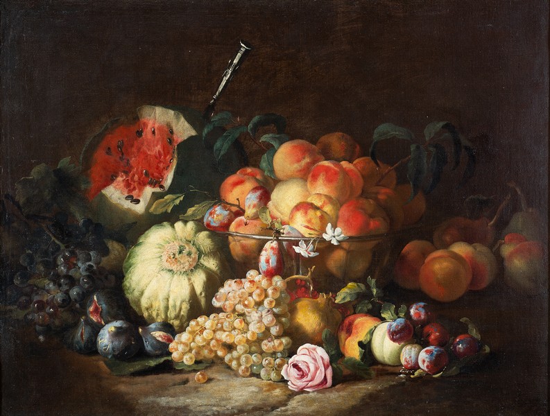A Napoli, Brueghel sviluppò uno stile personale che univa la precisione fiamminga a una composizione più ampia e spettacolare, tipica del gusto barocco italiano. Le sue nature morte si distinguono per l’abbondanza degli elementi raffigurati: cesti colmi di frutta matura, fiori rigogliosi, selvaggina, animali vivi o appena cacciati, spesso accompagnati da oggetti preziosi o architettonici. Queste composizioni trasmettono un senso di ricchezza e vitalità, ma allo stesso tempo possono alludere alla caducità della vita, secondo il tradizionale significato simbolico della natura morta.