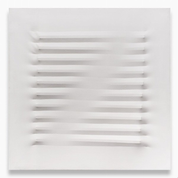 Tra le opere di Agostino Bonalumi aggiudicate nelle aste BLINDARTE: un cirè estroflesso del 1968 intitolato Rosso (aggiudicato a 81.250€) e una tela estroflessa del 1974 intitolata Bianco (aggiudicata a 45.000€).