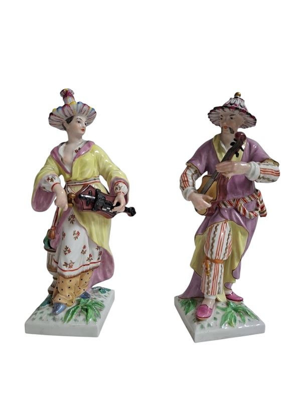 a)Coppia di figure femminili reggicandele; b) Statuetta porta profumo; c) Coppia di musicisti cinesi