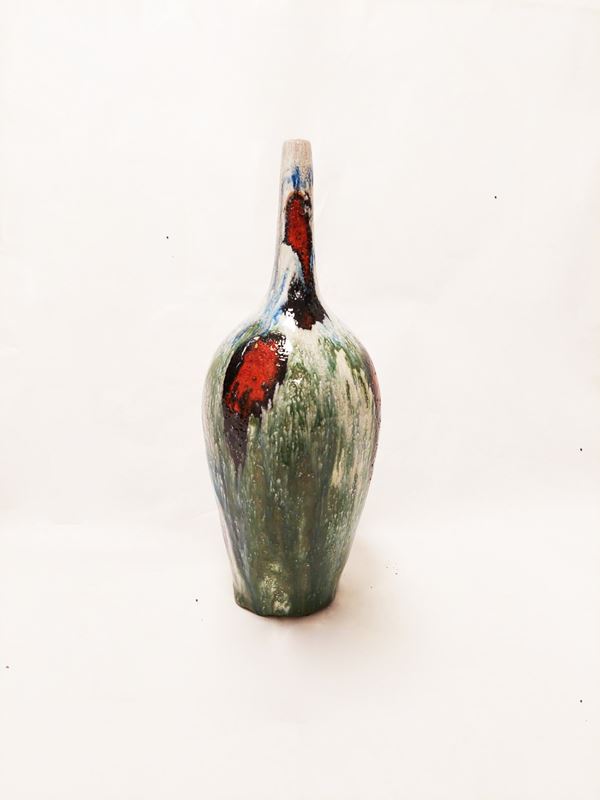 Bottiglia in ceramica smaltata e decorata
