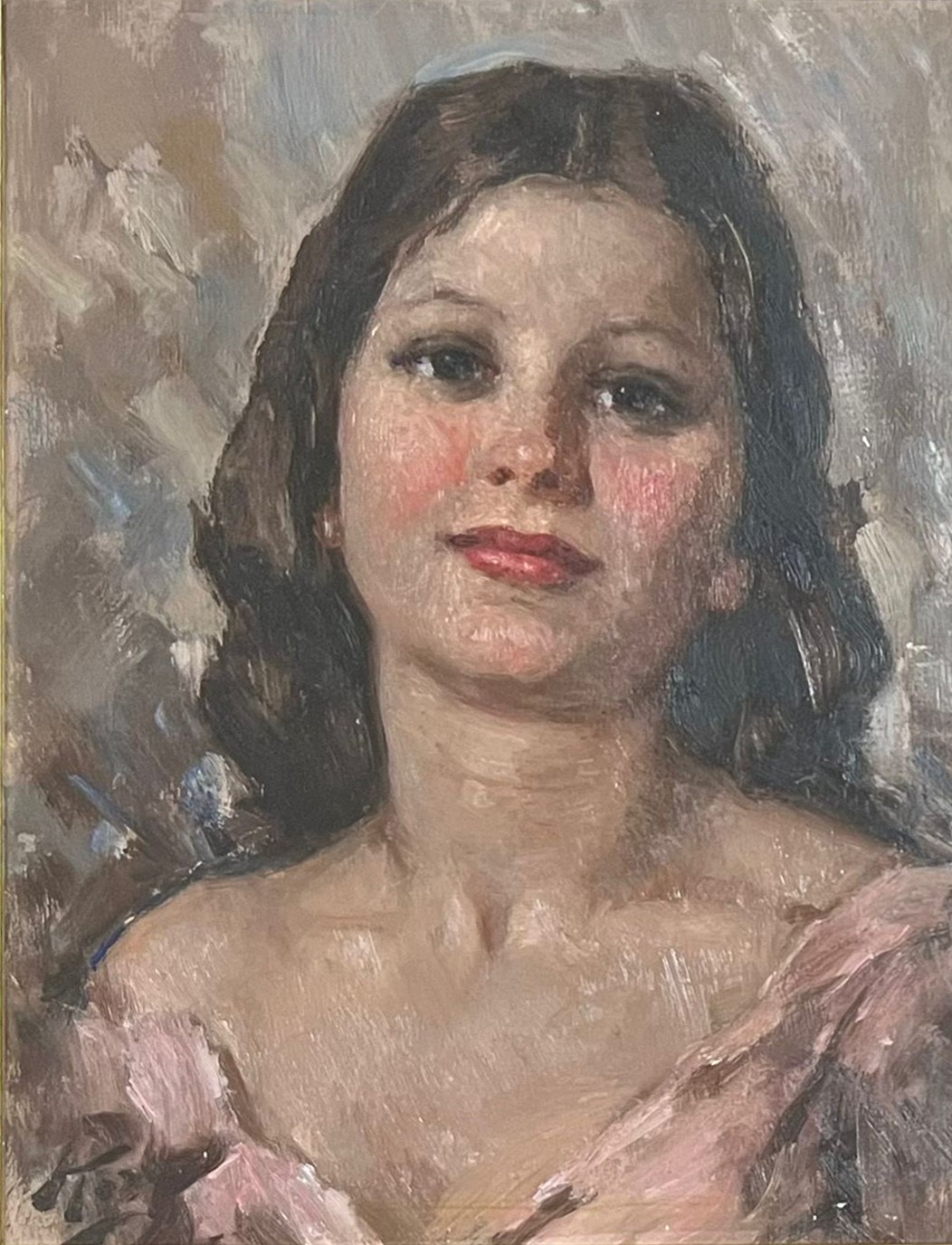 Portrait of a woman in a pink dress