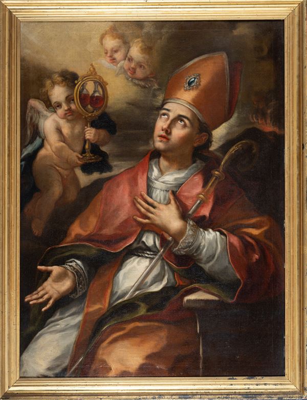 San Gennaro in estasi con le sacre ampolle del sangue miracoloso