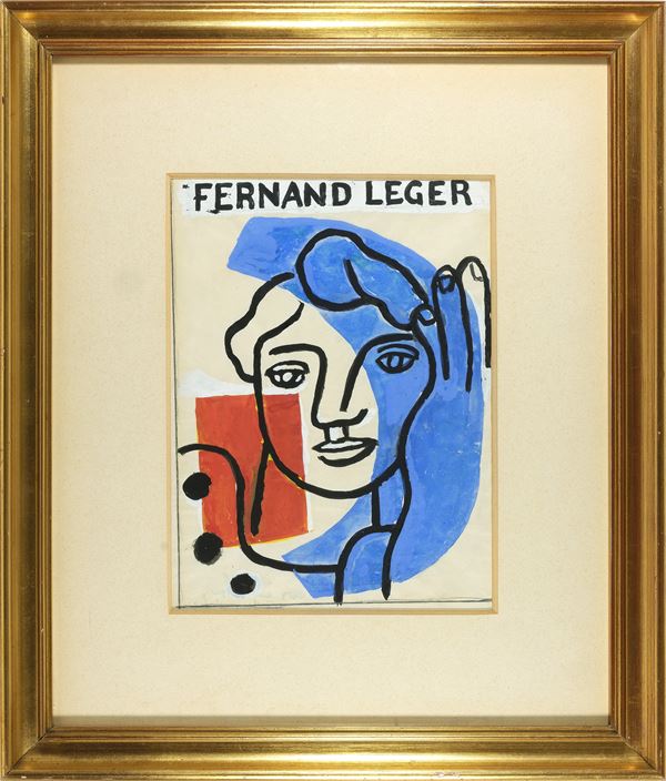 The paper gouache of 1950 ca. proposed here, from the collection of the artist’s heirs and registered at the Comité Léger, is entitled "Projet d'illustration". The three main colors (red, white and blue) are those of the French flag and above them are the features of a female face.