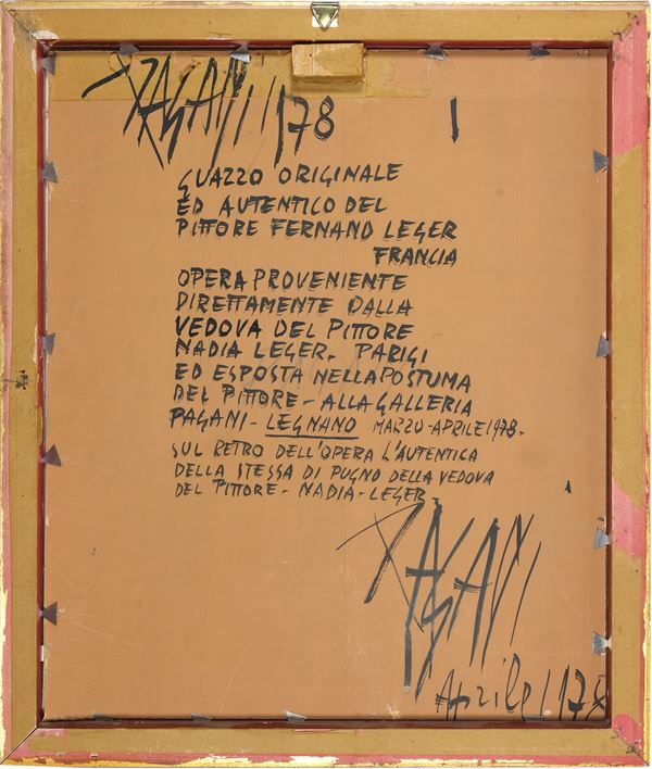 Inscription on the reverse of the paper by Nadia Léger: "Ouvre authentique de F. Léger. N. Léger"