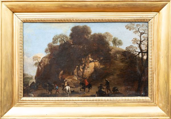 This painting has been attributed to the Venetian painter Antonio Marini (Venice 1668โ1725), who, during his stay in Florence at the Medici court, was strongly influenced by the stylistic characteristics of Salvator Rosa's landscapes. These influences are evident in the landscape section of the painting, which also reflects the traditional chromatic choices of Pieter Mulier, known as Tempesta.