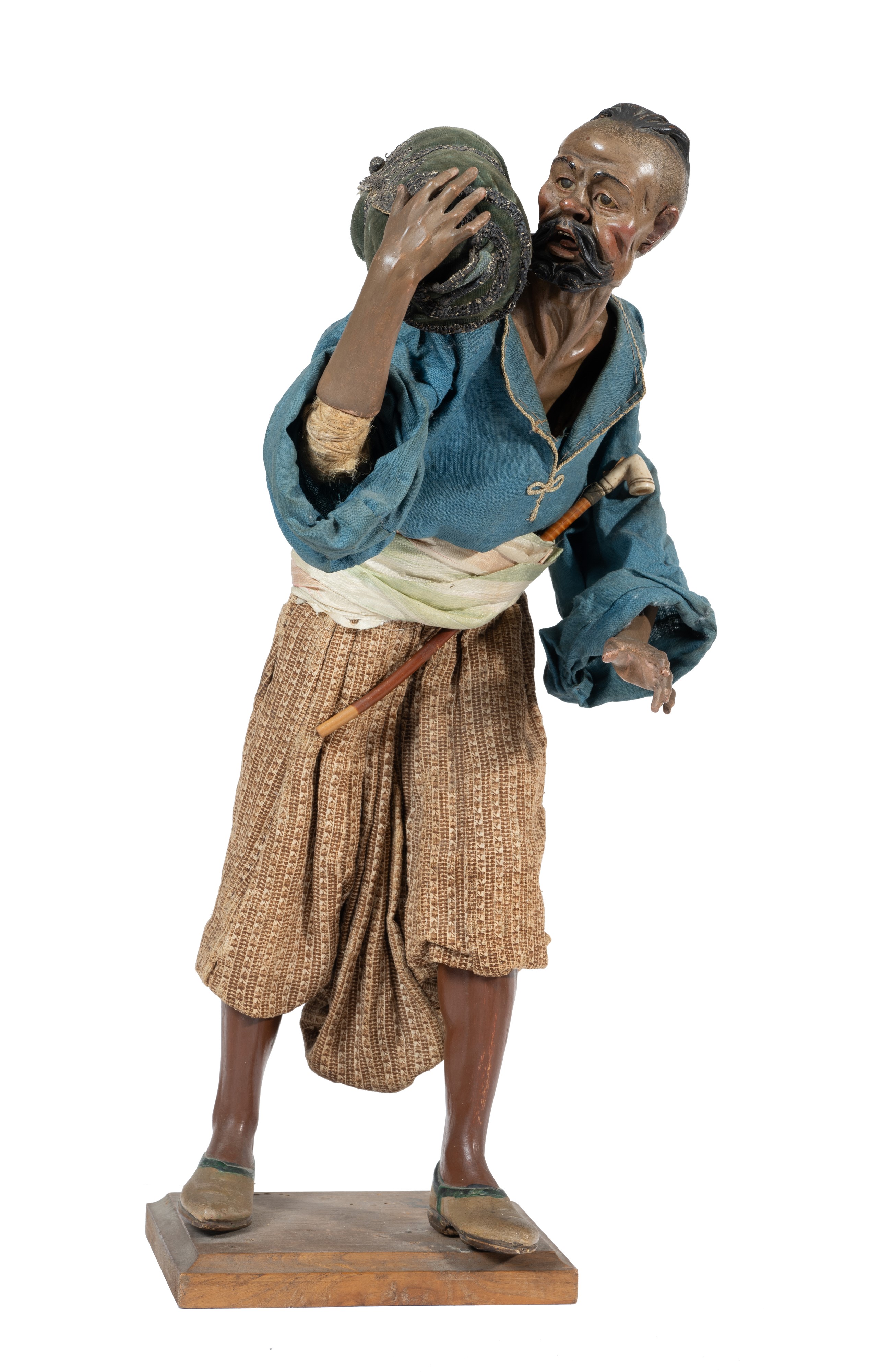 In the King's Nativity Scene, owned by the Bank of Naples and occasionally displayed in the chapel of the Royal Palace of Naples, there are many figurines by Lorenzo Mosca.