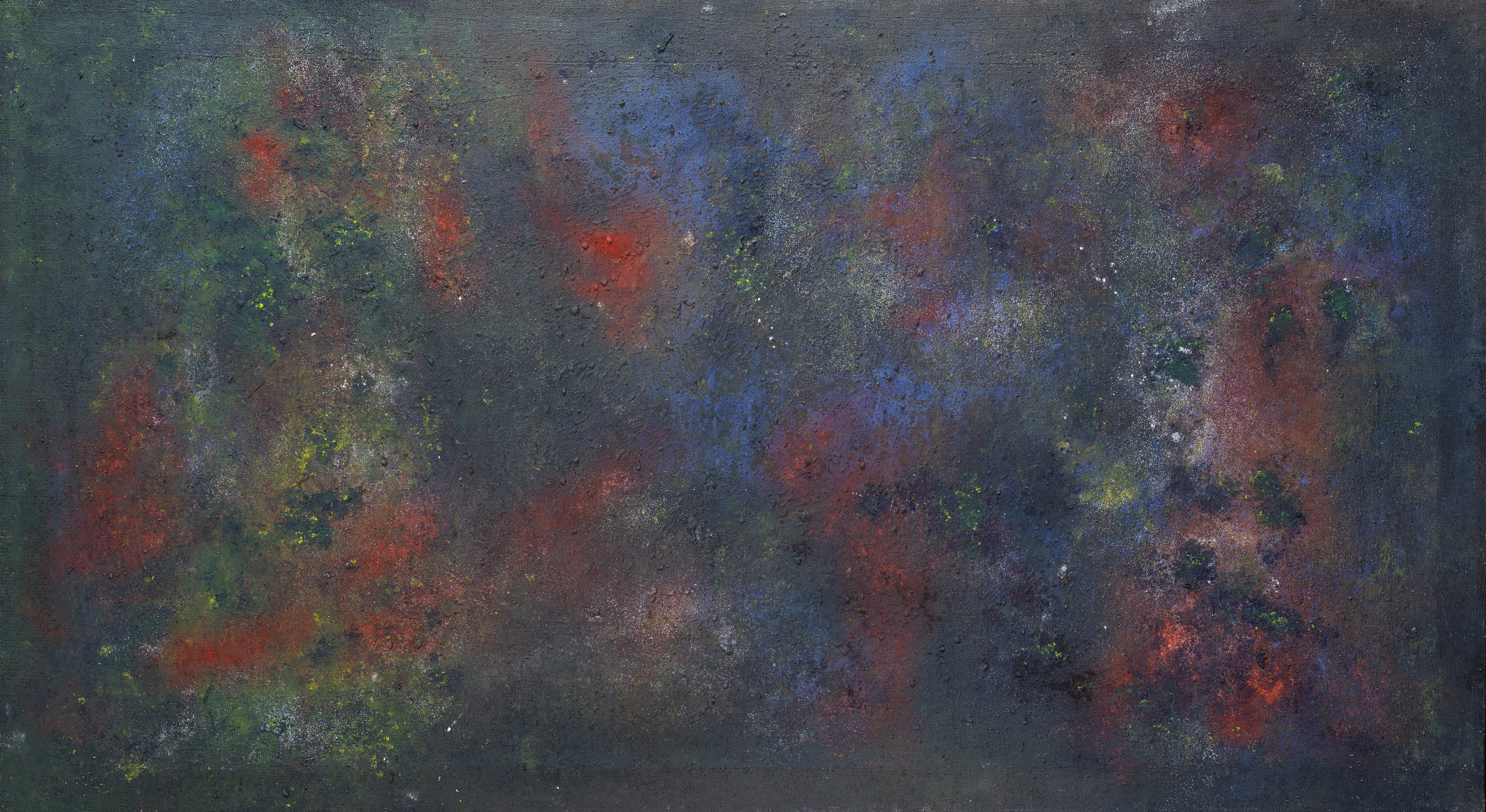Oil, sand and colored powder on canvas
