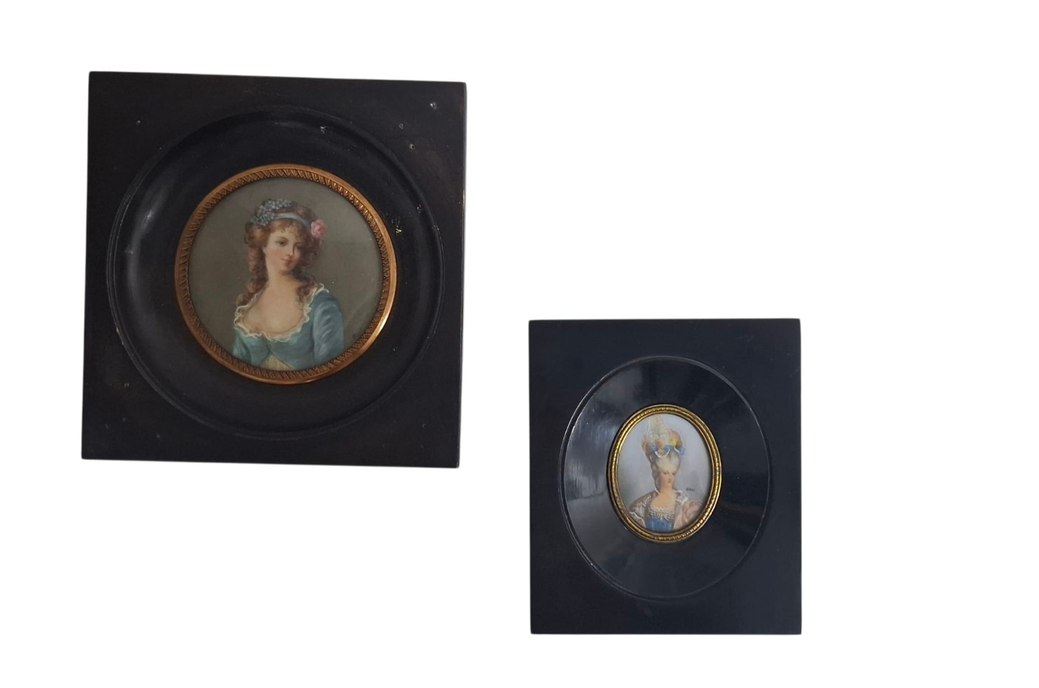 di forma ovale, entro cornici ebanizzate con profilo in ottone dorato