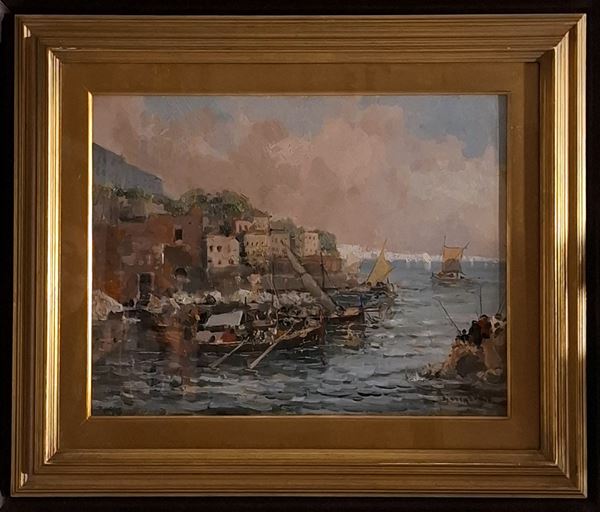 The painting presented represents a particular point of view of the famous rock of the two Friars in Posillipo